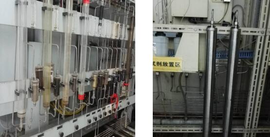 鍋爐汽水取樣間的常見產品除了水樣過濾器就是離子交換柱了,下圖所示的兩款交換柱就是最常見。